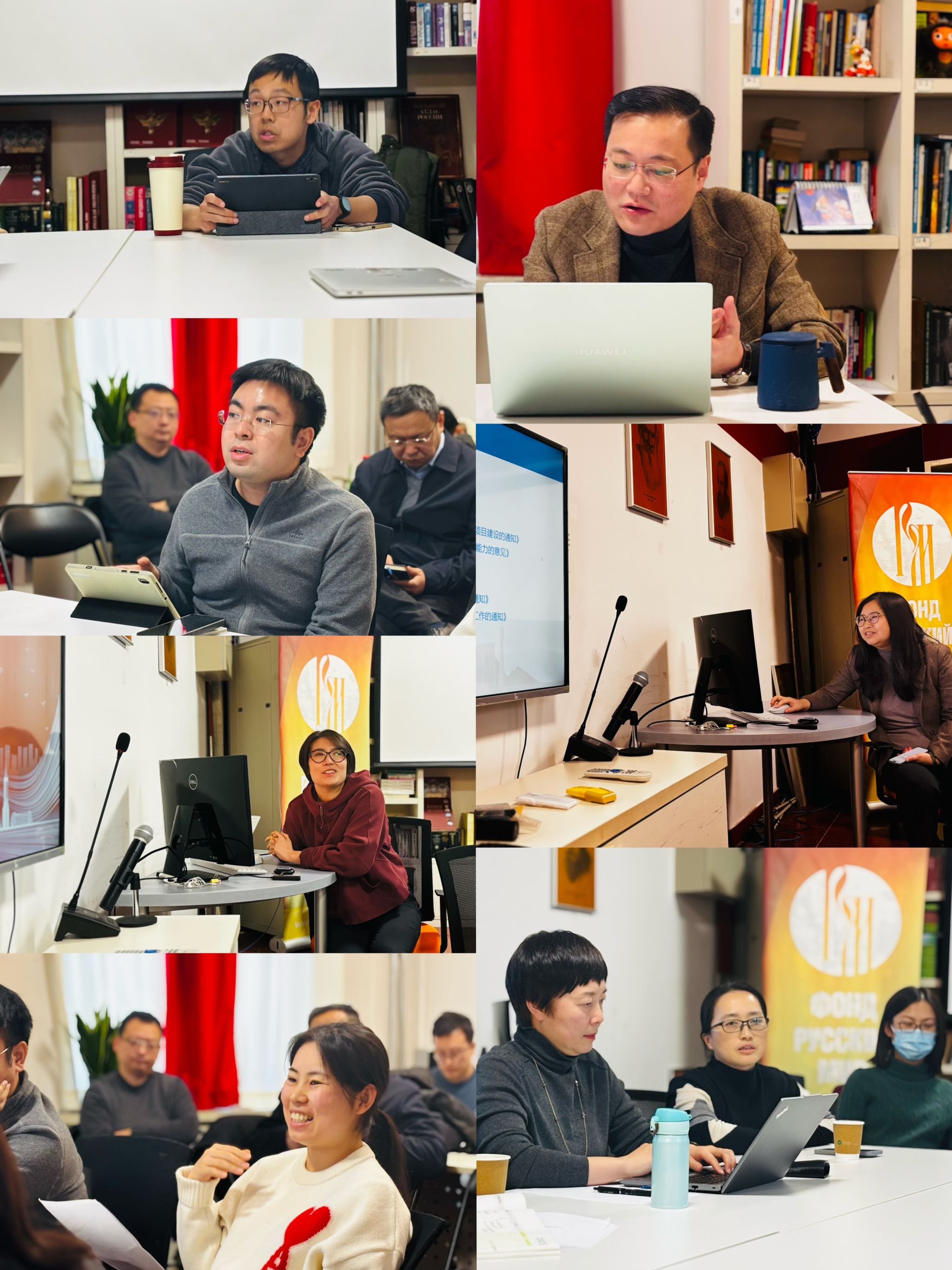 随后,孙芳、劳华夏、熊乐平老师作为“‘理解当代中国’俄语演讲课”的课程组老师,先后介绍了该课程3年授课的整体情况。孙芳老师介绍了目前课程建设取得的前期成果,指出目前教学痛点在于学生语言水平不同以及相关知识点的吸收和运用难度大,授课教师因此将重点放在理解每一课习近平总书记重要讲话的主题上,讲练结合,要求学生从内容结构、语速语调、仪态仪表等方面全方位模拟真实俄语演讲场景。劳华夏和熊乐平两位老师分享了自己的授课经验,并对如何提升学生课程认同和学习积极性进行了介绍。