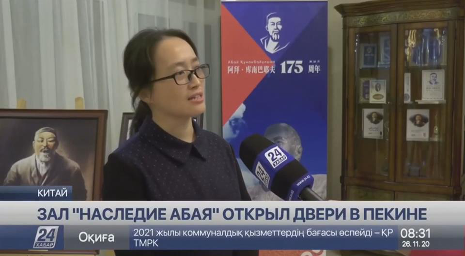 2020年11月25日,我院哈萨克斯坦中心主任孙芳老师,受邀参加了在哈萨克斯坦驻华使馆举行的为纪念哈萨克诗人、教育家、现代哈萨克书面文学的奠基者、思想家、哲学家、作曲家、翻译家阿拜·库南巴耶夫诞辰175周年而设立的“阿拜遗产”艺术文学馆的开幕式。