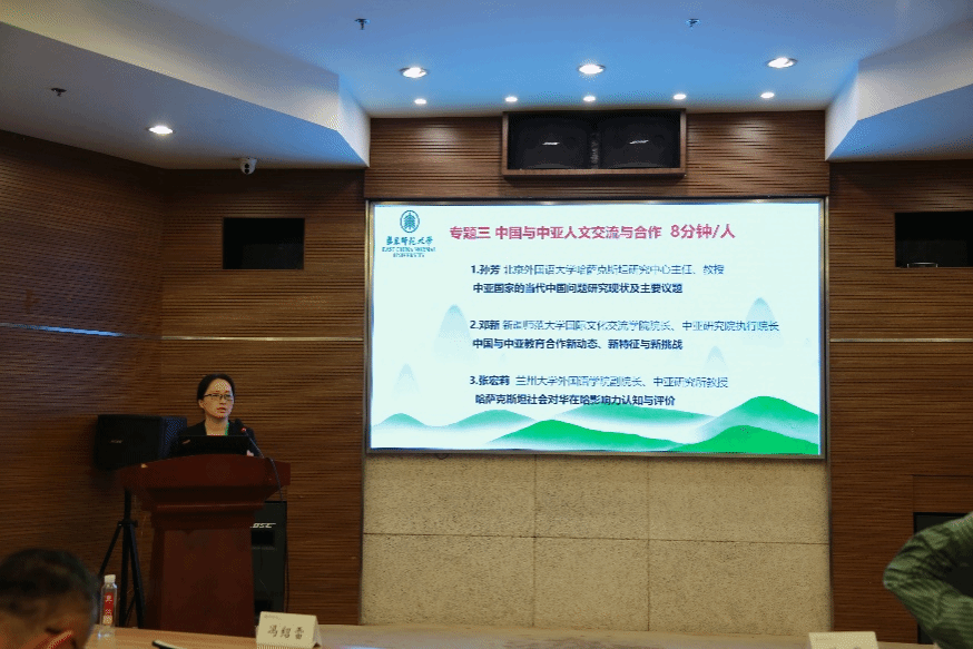 哈萨克斯坦研究中心主任孙芳教授在“专题三 中国与中亚人文交流与合作”环节中做了题为《中亚国家的当代中国问题研究现状及主要议题》的发言,并同与会学者进行了深入探讨交流。