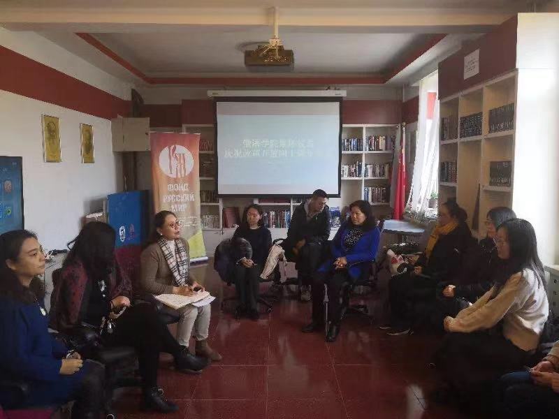 在主楼四层俄语中心组织学院师生集体收看庆祝改革开放四十周年大会活动。学院党总支书记李春丽、院长黄玫,副院长戴桂菊、何芳及全院二十余名师生代表集体收看了大会直播并展开了深入学习和讨论,活动由李春丽书记主持。