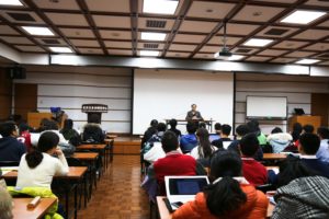 选修形势政策课程的本科生及北外附中部分师生听取了讲座,会议室中座无虚席。报告会由小宝影院